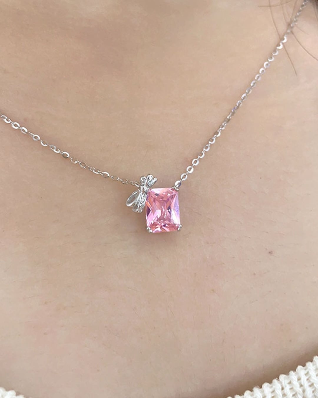 スクエアストーンリボンネックレス(2 colors) R2507016