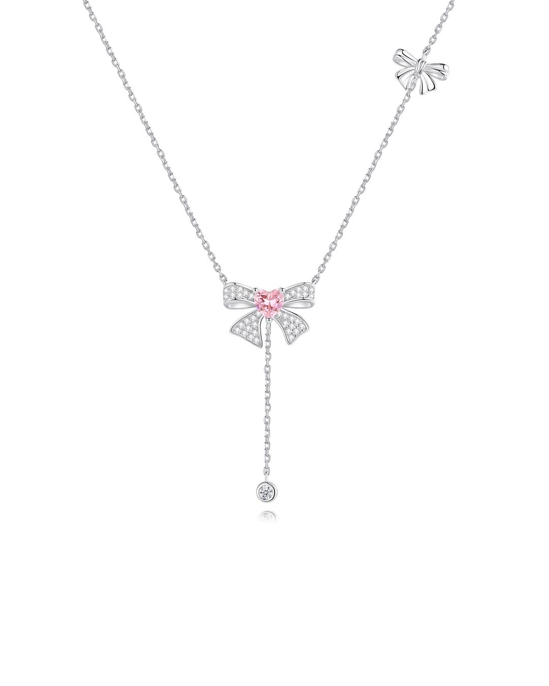 ピンクストーンリボンタッセルネックレス R2407023