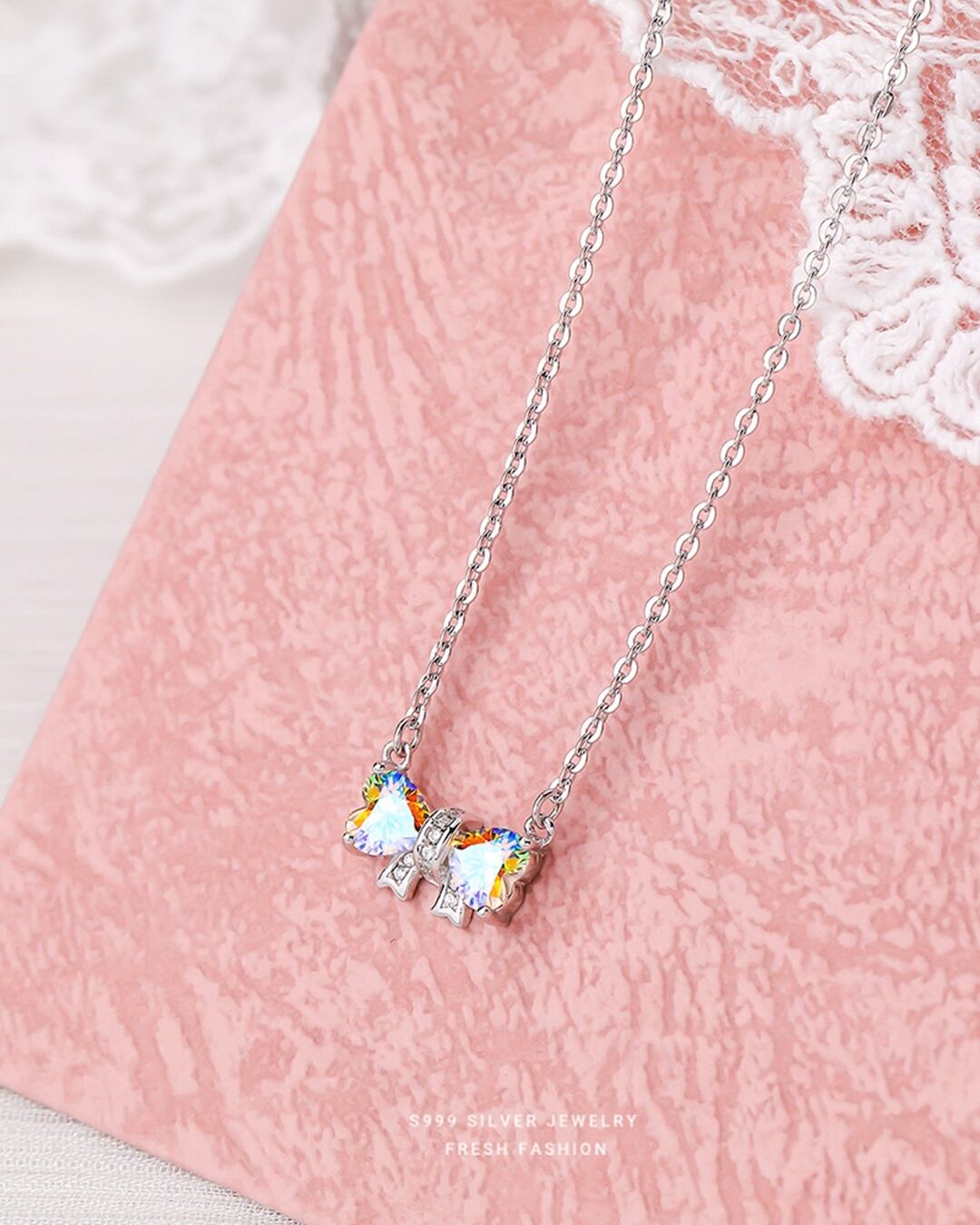 ハートストーンリボンネックレス(2 colors) R2407045