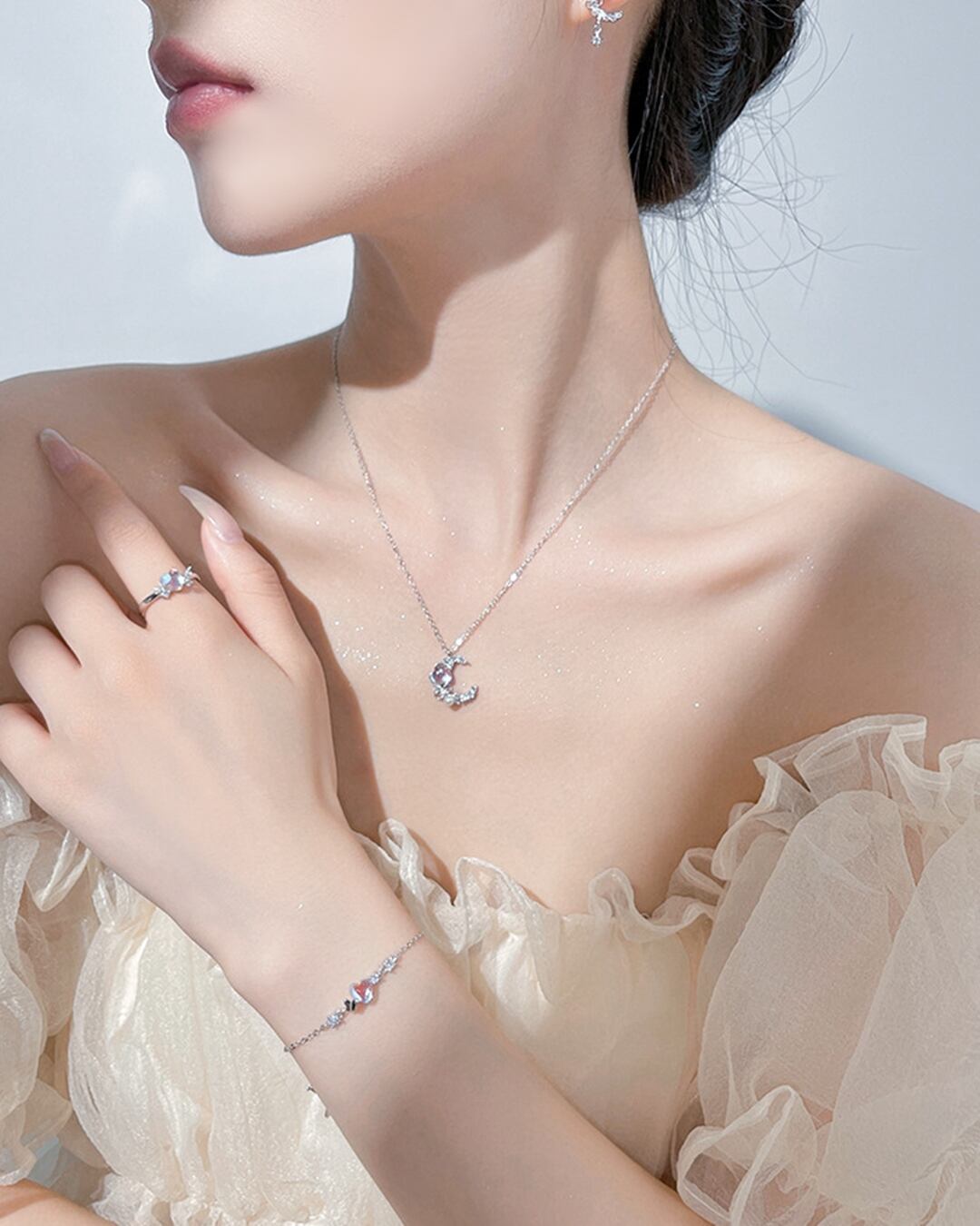 素材:S925スターリングシルバー(ニッケル完全不使用)、ジルコニア、ムーンストーン